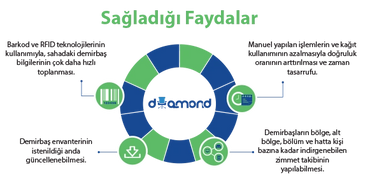 Diamond Demirbaş Yönetim Sistemi, demirbaş sınıfından sayılan tüm ofis araç ve gereçlerinin kullanıma alınmasından, kullanım dışı kalmasına kadar geçen süre içerisindeki takibini ve kontrolünü yapar. Barkod vb. otomatik tanıma teknolojilerinin de kullanımıyla veri girişlerinin çok daha hızlı, kolay ve doğru yapılmasını sağlar.